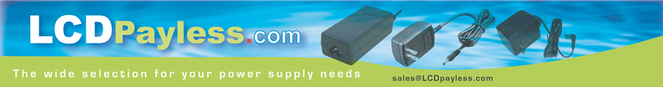 LCDPayless is a leading resource of quality powersupply equipment for LCD monitors, televisions, digital cameras, laptops, cell phones and electronic equipment. We specialize in OEM AC/DC power adapters, and customized power connectors in any voltage or amperage. To begin viewing our large selection of in-stock power adapters, click on the menu above, or visit our eBay store. Need a large quantity? Email sales@lcdpayless.com for a special quote.